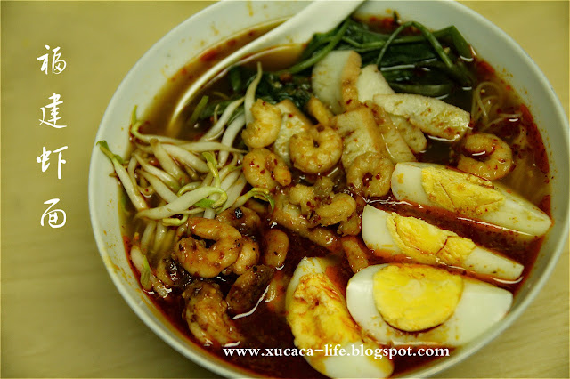 吃得笑嘻嘻的,他说终于吃到料多过面的福建虾面了。哈哈!