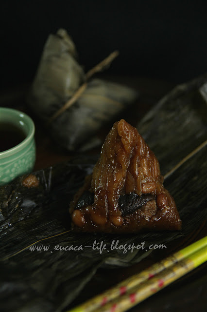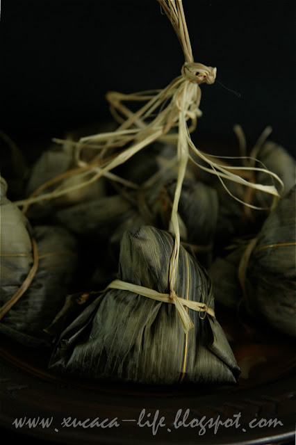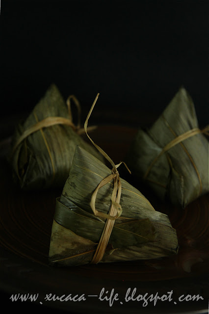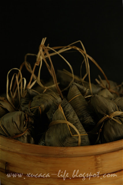 4)把锅加水煮滚,然后把绑好的粽子放入以大火蒸大约50分钟或熟透即可。
