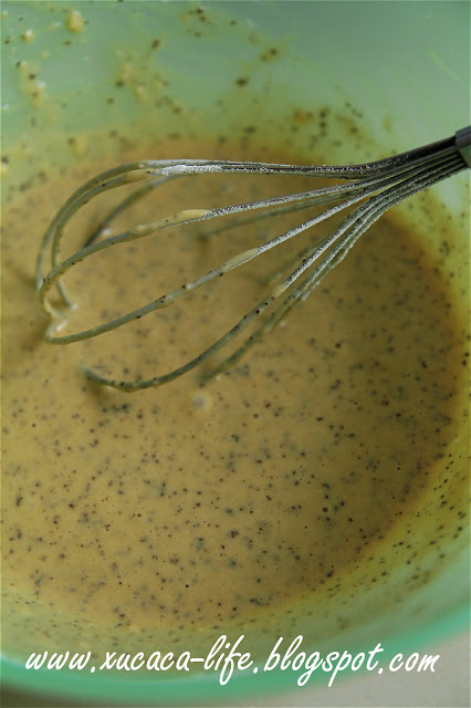 5) 倒入面粉搅拌成均匀的奶茶面糊。