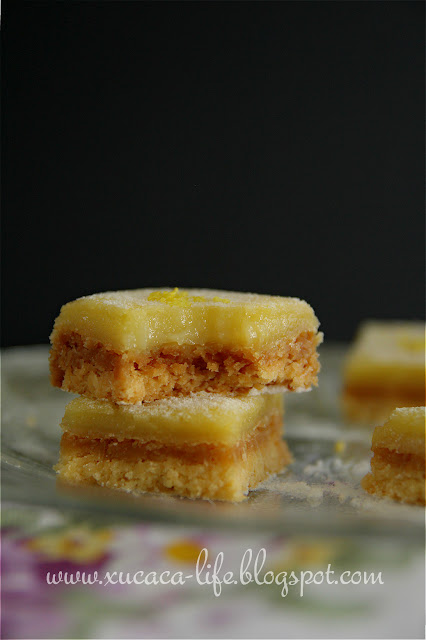 2)将柠檬蛋液倒入以上准备好的饼干上,再送入烤箱以170度烘烤大约25-30分钟或表层的蛋液定型即可。