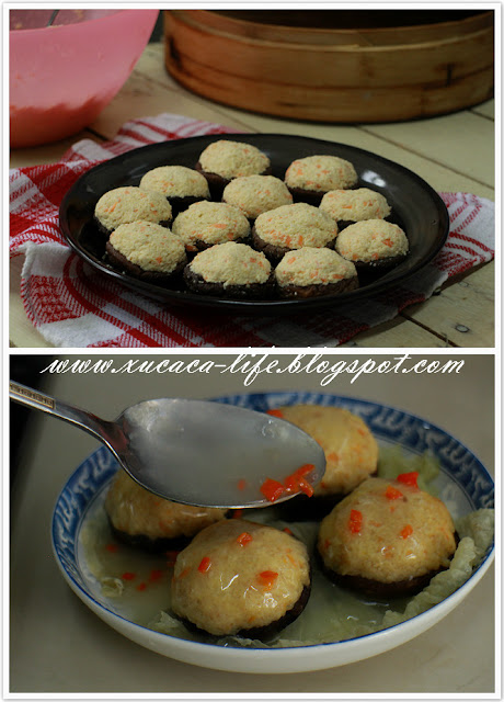 油煎的香菇釀烧卖会比较香。。。。。。