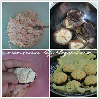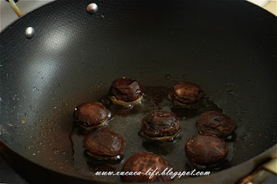 1) 香菇浸泡后,洗清洁把水挤干。备用。
