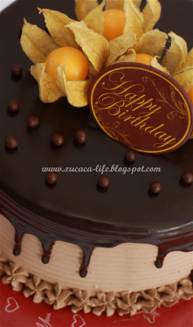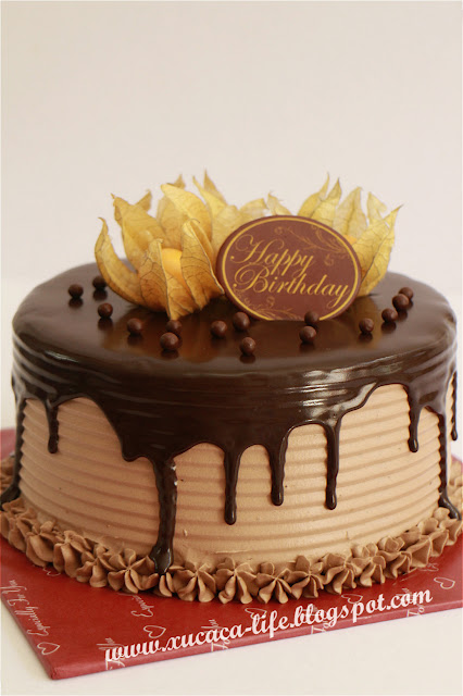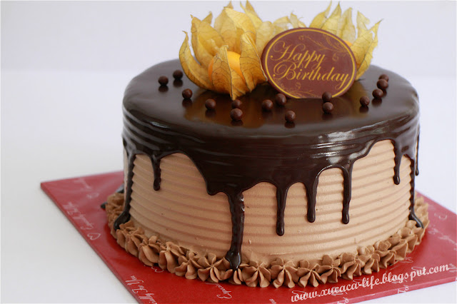 5) 奶油涂好后,加上巧克力淋浆或装饰便可。
