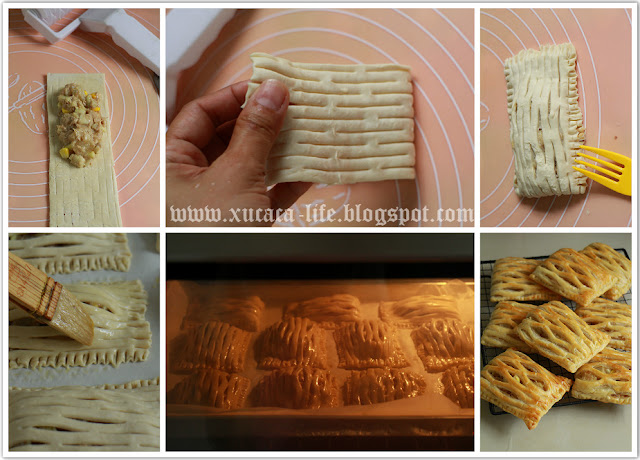 ** 可以用剪刀或puff pastry多功能切刀在 pastry 片上割线条 **
