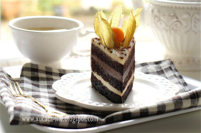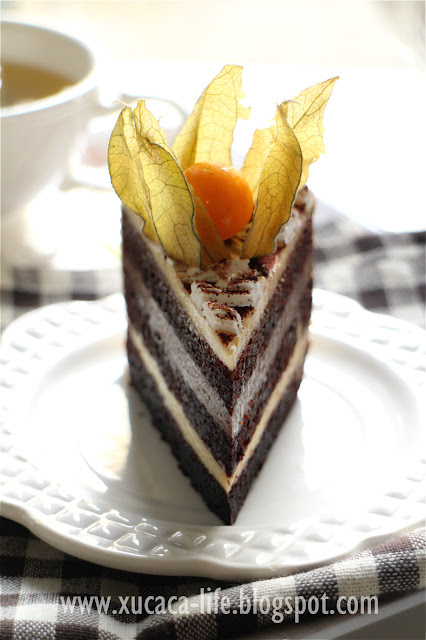 * 表层撒些适量的巧克力粉(防潮湿)做为简单的装饰。