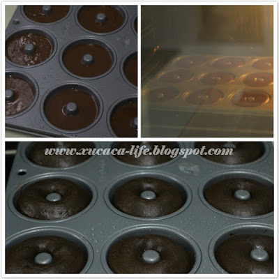 6) Bake for 10 min or until when a toothpick inserted into the donut come out clean. Then invert them onto a cooling rack.