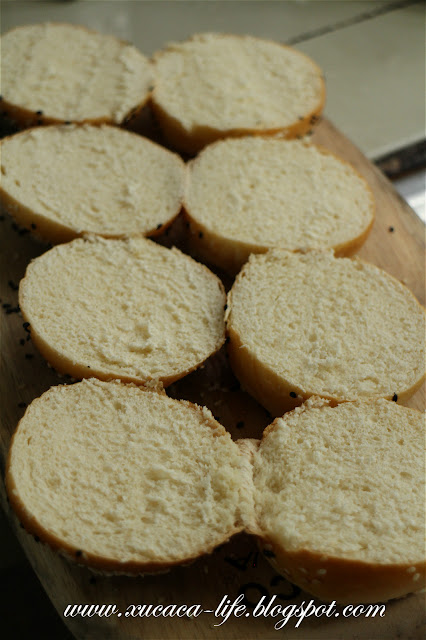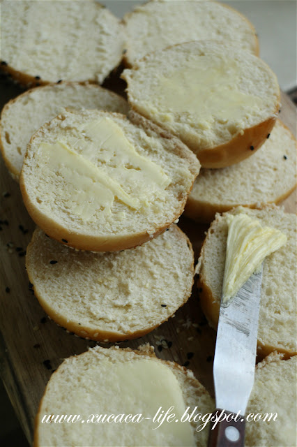 餐包中间切开。。。。。。