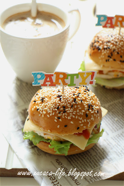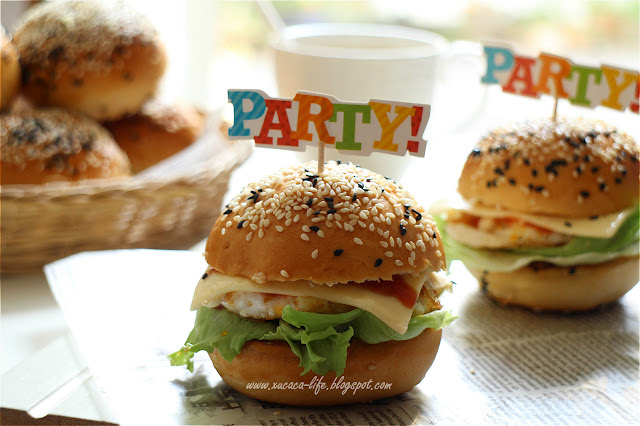 上层再盖上半边的餐包。那就搞定咯!