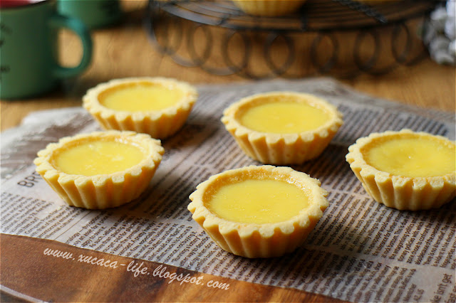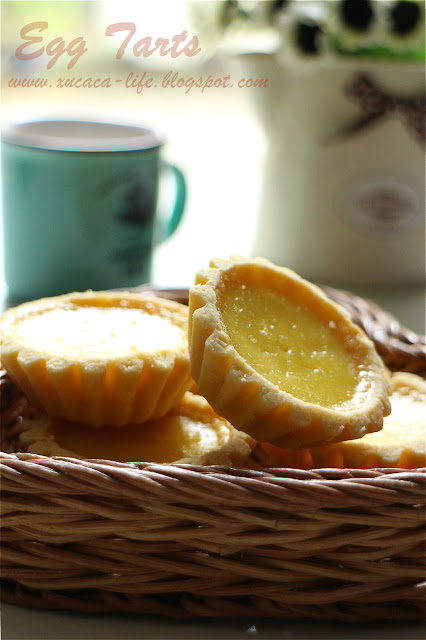 4。倒入8分满的蛋液。预热烤箱,以170度烤20-25分钟,蛋挞表层的蛋陷即不动摇便可。