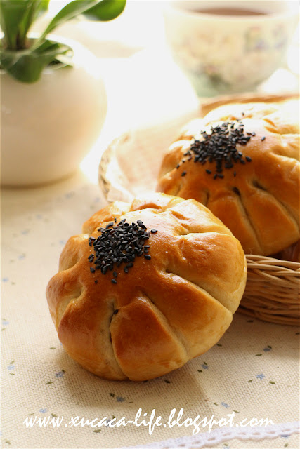 6)送入预热后的烤箱,以170°度烘烤大约25分钟或表层变得金黄色即可。(温度和时间依据个人烤箱调整)