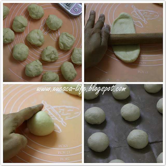 把小面团擀平,排气后再搓圆放置最后的发酵30-40分钟。