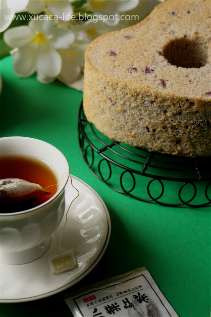 8) 蛋糕烘好后,立刻把蛋糕取出倒扣,待冷脱模后切开才享用。