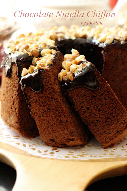 8。蛋糕出炉后,以倒扣方式待凉后才脱模淋上巧克力酱后,表层撒上适量的榛果碎即可。