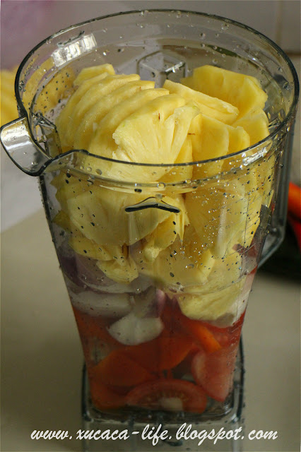 1)黄梨1/2粒(黄梨中间的心也可以加入)、红番茄4个、
