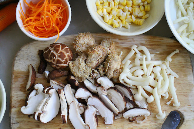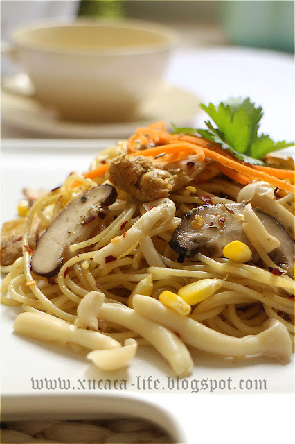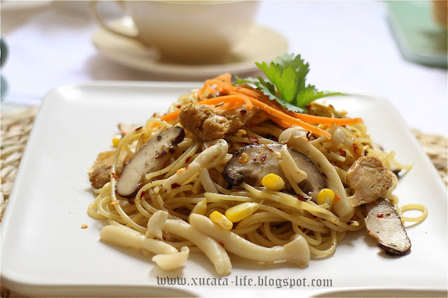 $ 0 0 无需太费时,就地取材,又是一道简单的晚餐。蒜香蘑菇意大利面材料:意大利面 4人份大蒜 1大个(切粒)各种菇类 (适量)玉米粒 1杯红萝卜丝 1/2根调味料:橄榄油、香菇粉、蒜香粉、辣椒粉、罗勒叶(少许)【做法】1)意大利面放入滚水中,加入少许的橄榄油煮软捞起。备用。2)烧热锅,加入适量的橄榄油将蒜粒爆香,再加入所有菇类炒香。3)倒入意大利面,玉米粒,萝卜丝混合,加入适量的调味料炒拌即可。